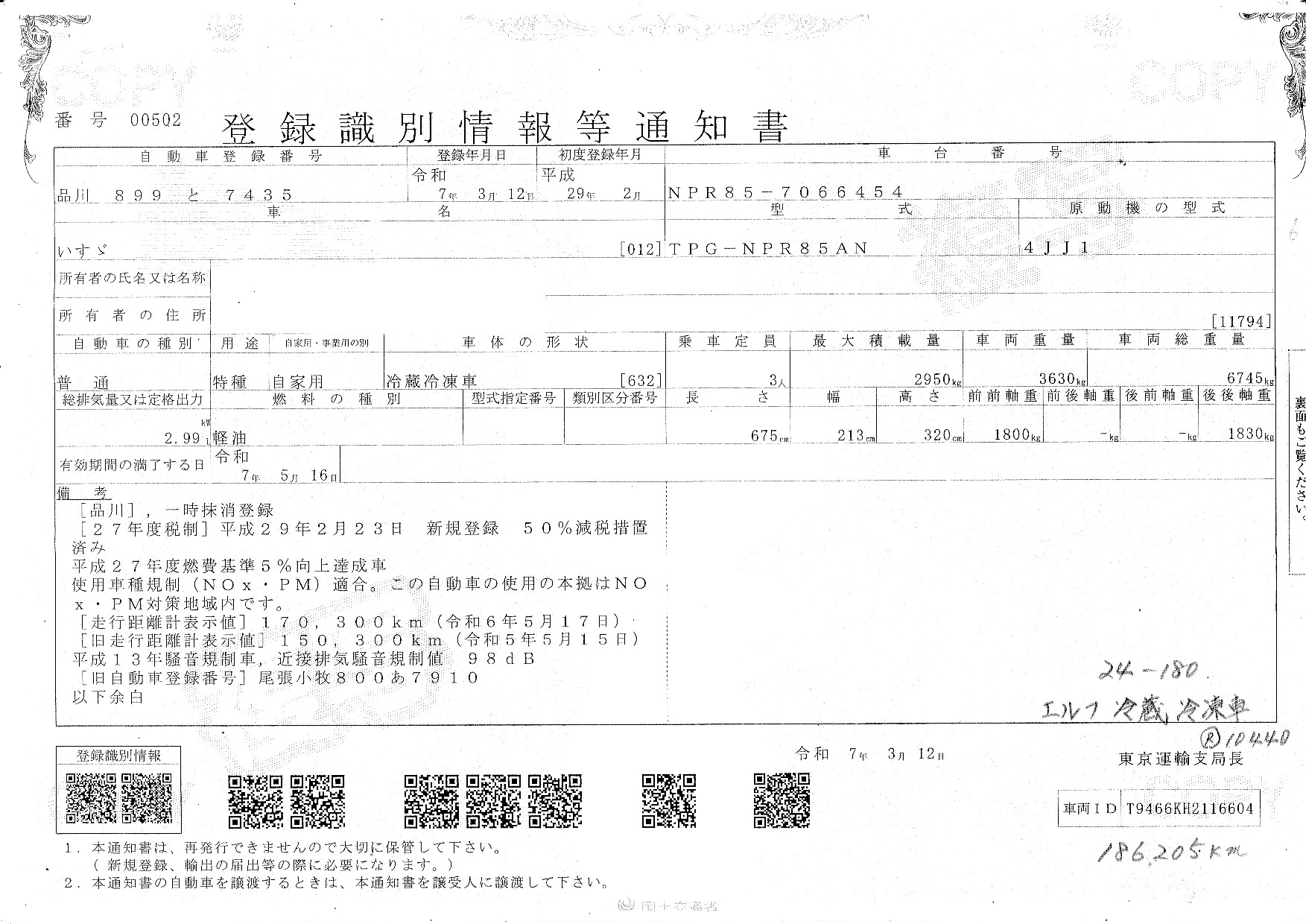 | 架装特記事項 | 菱重製冷凍機TDJW50-L2 リア扉厚さ約10㎝ -30℃設定外気温15℃2時間-26℃確認 リア3枚扉 低温設定 |