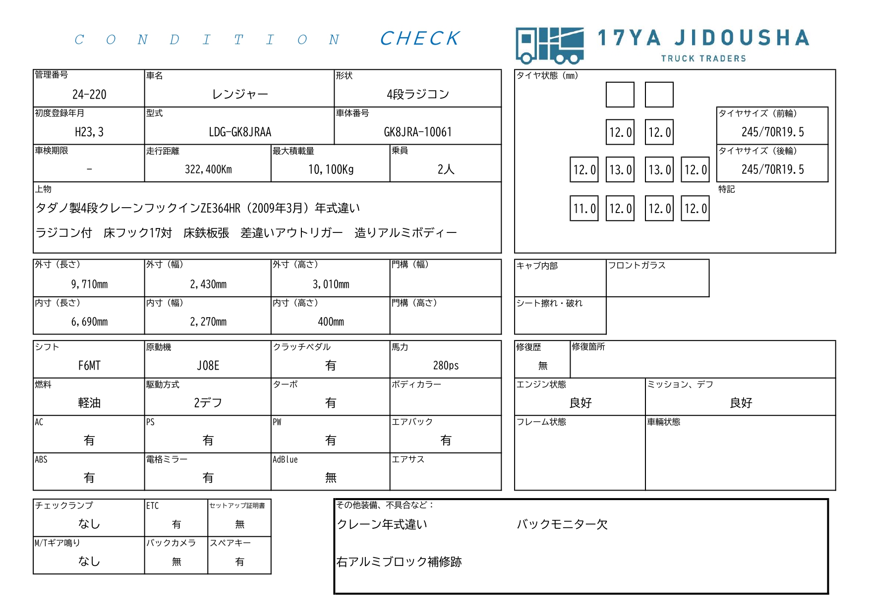 [24-220]H23年レンジャー4段ラジコン増t 10t 33万㎞ LDG-GK8JRAA