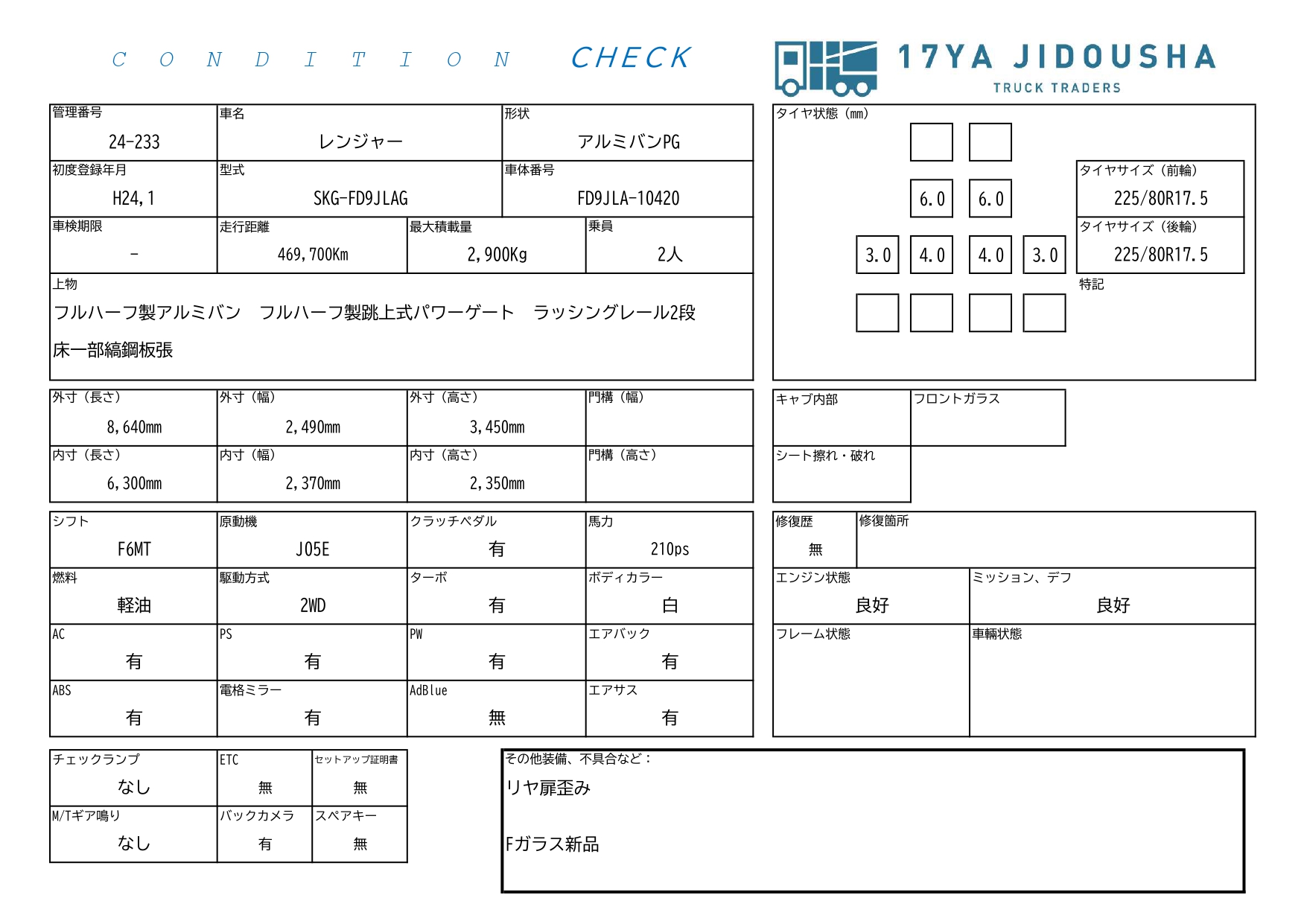 [24-233]H24年レンジャーアルミバンPG 2,9t 47万㎞ SKG-FD9JLAG