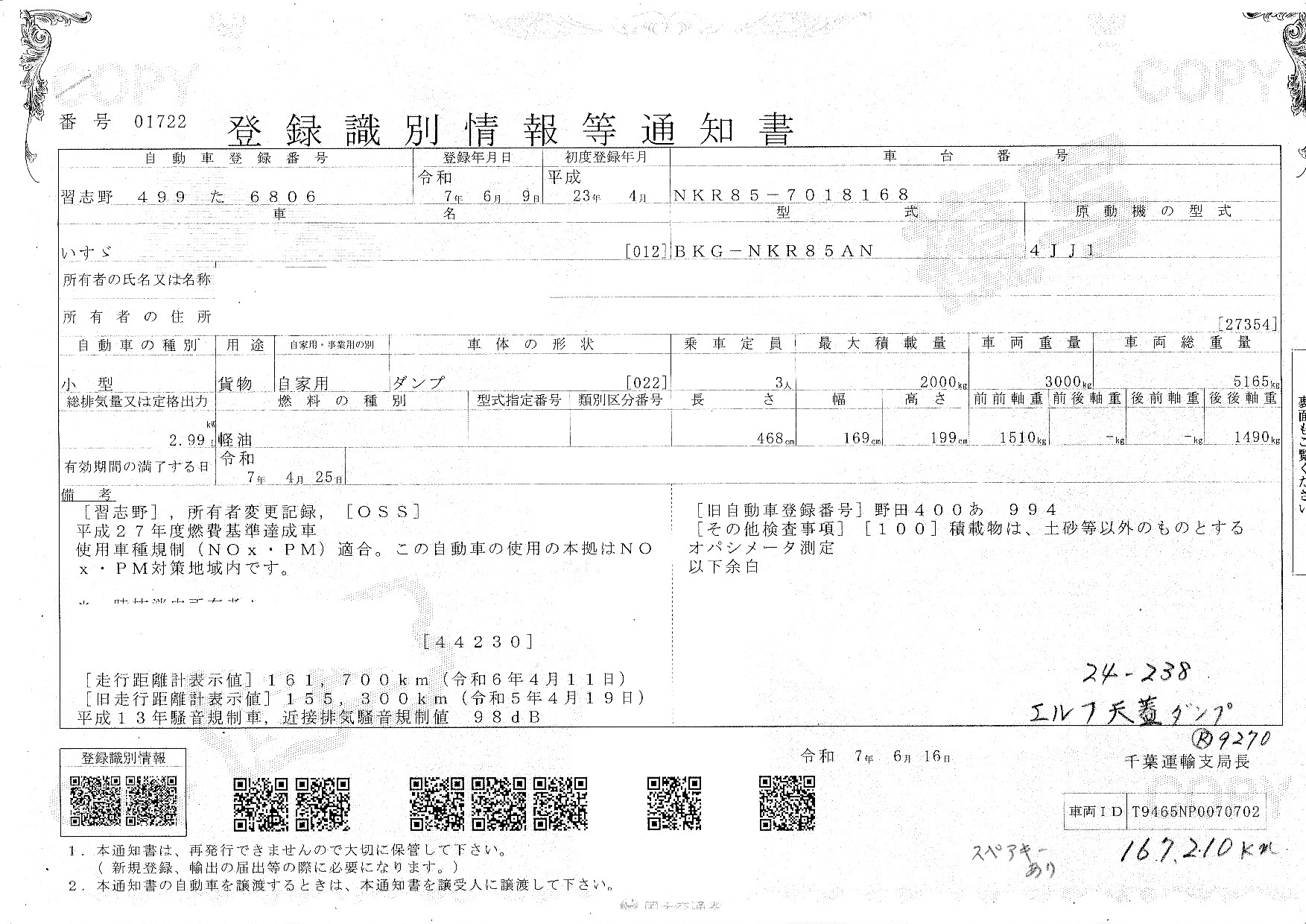 | 架装特記事項 | 新明和工業製天蓋ダンプDRB2 |