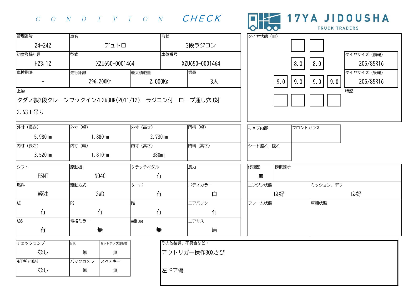 | ボディ仕様 | 3段クレーンフックインZE263HR(11/12) |