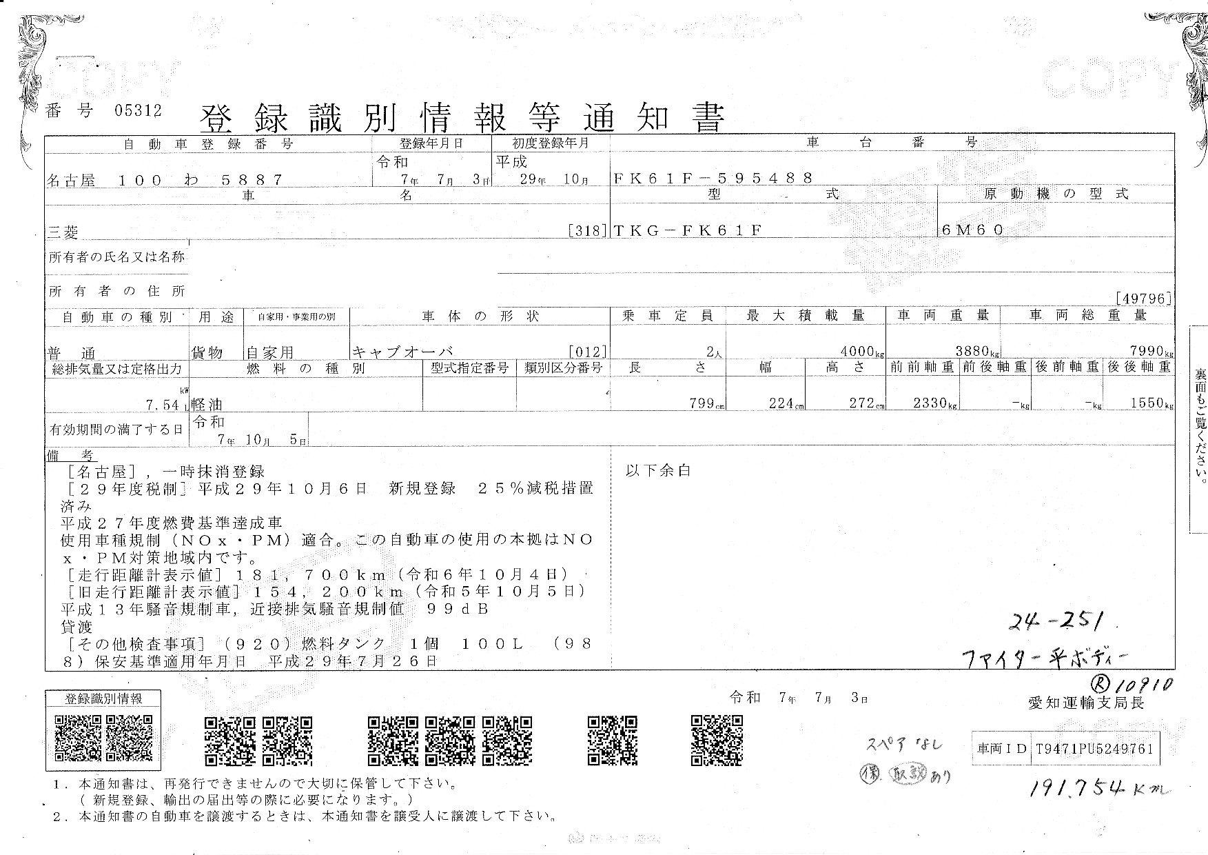 [24-251]H29年ファイター平ボディ 4t 20万㎞ TKG-FK61F