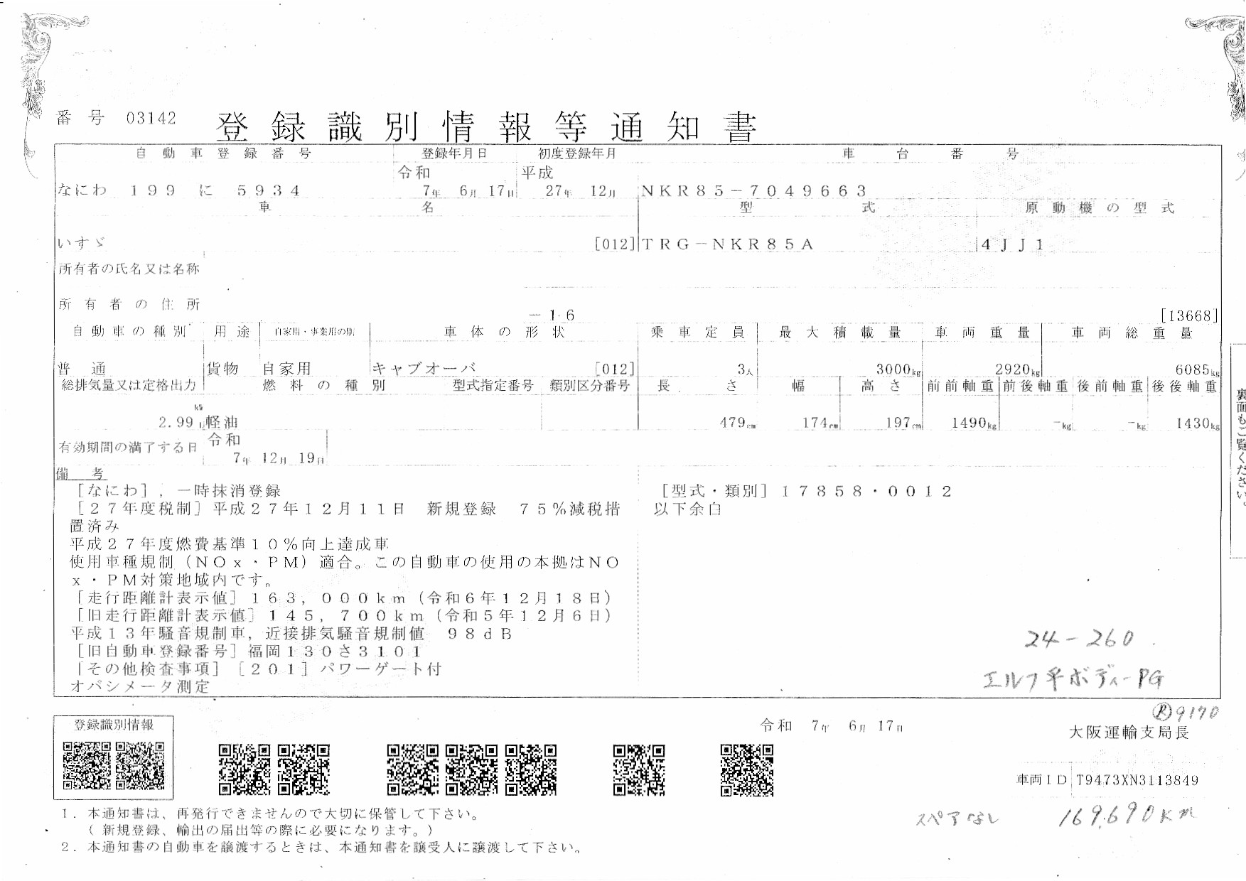 特記事項 1ナンバー 3トン ガス屋仕様 3ペダル 修復歴無
