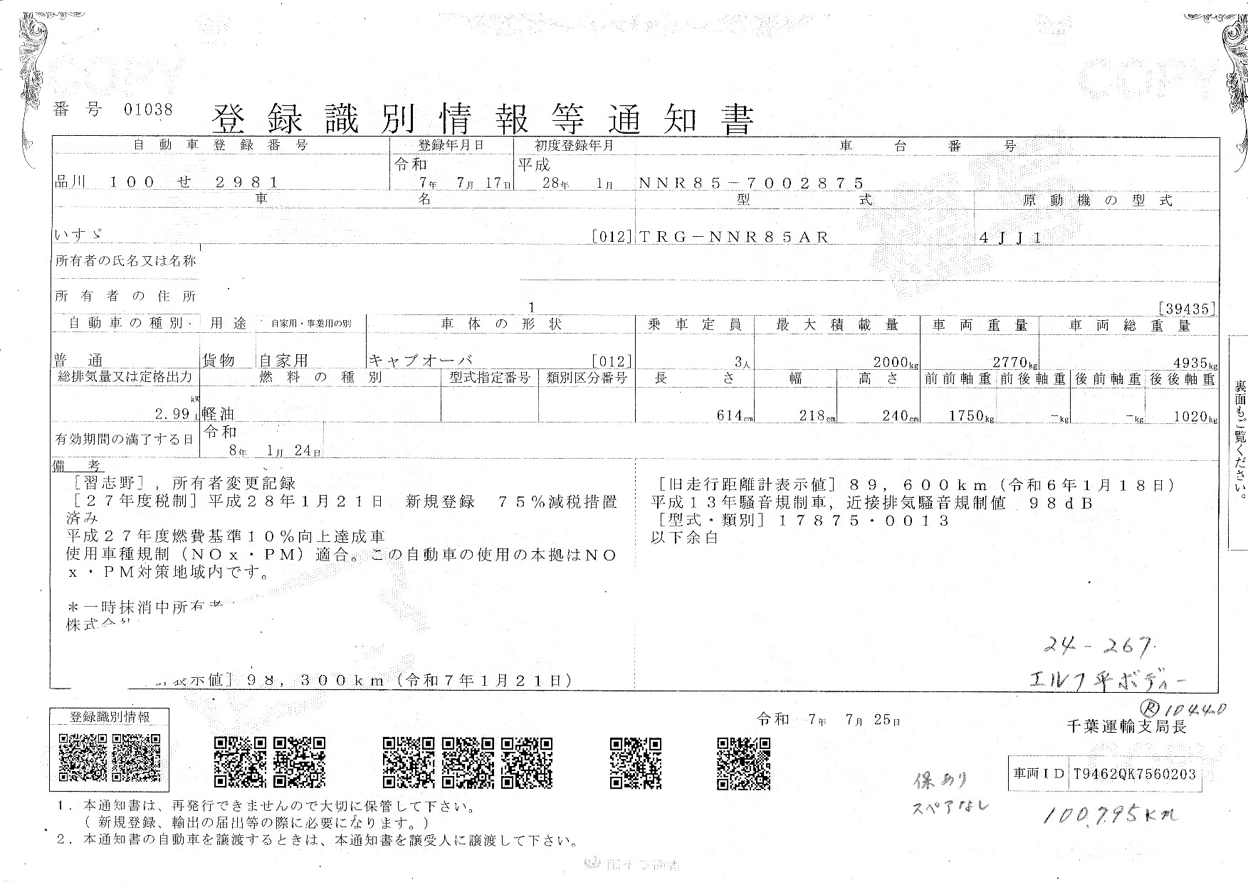 | 架装特記事項 | ラクチンスプリング 床板張替済 |