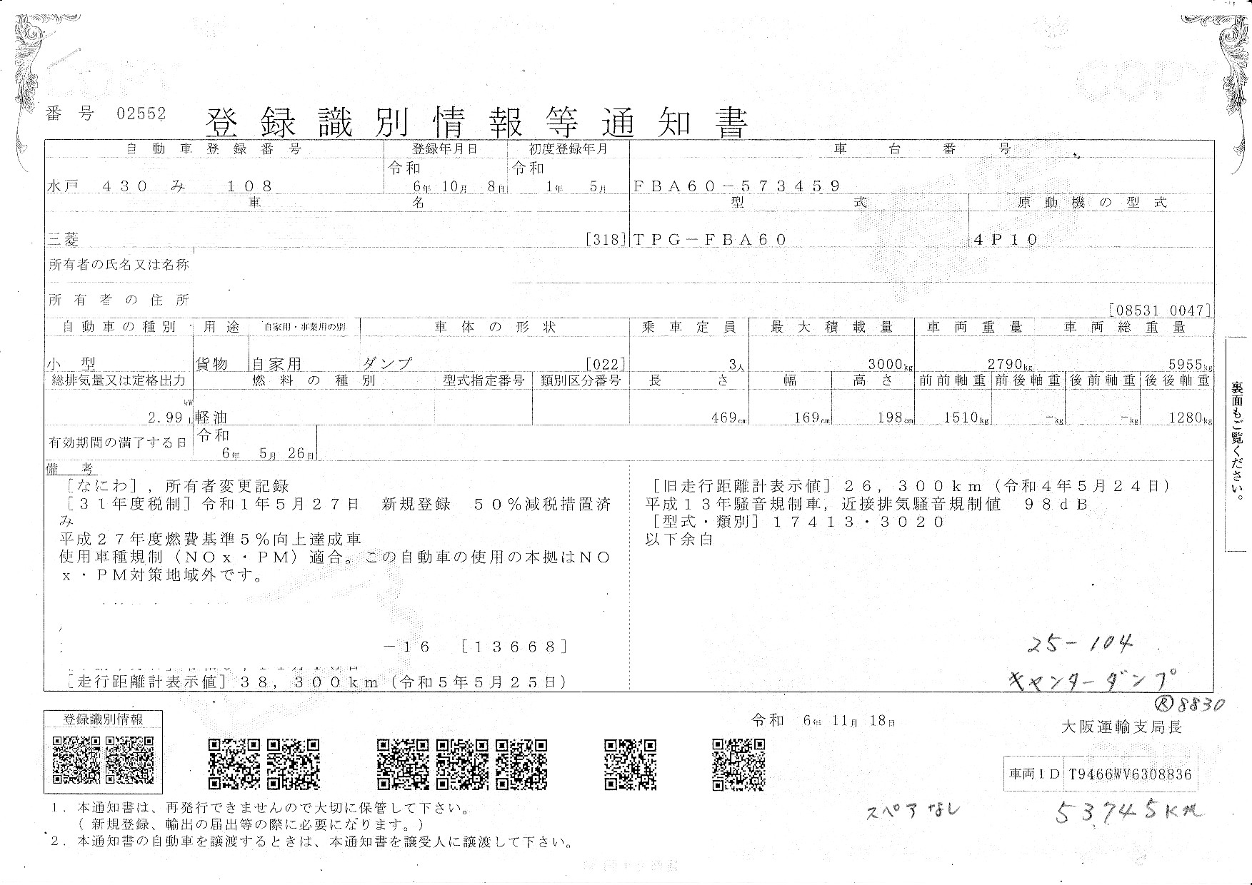 車台番号 FBA60-573459