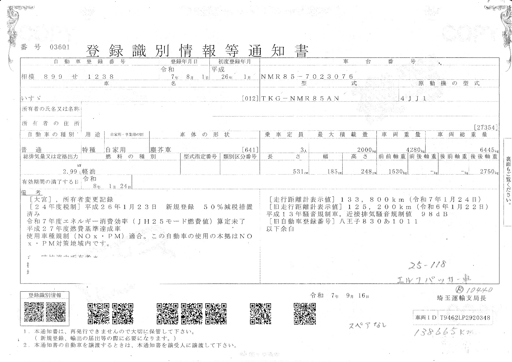 タイヤ溝 前: 7.0mm  -  /  後:  0.5mm 0.5mm  ×  × (リア交換必要)