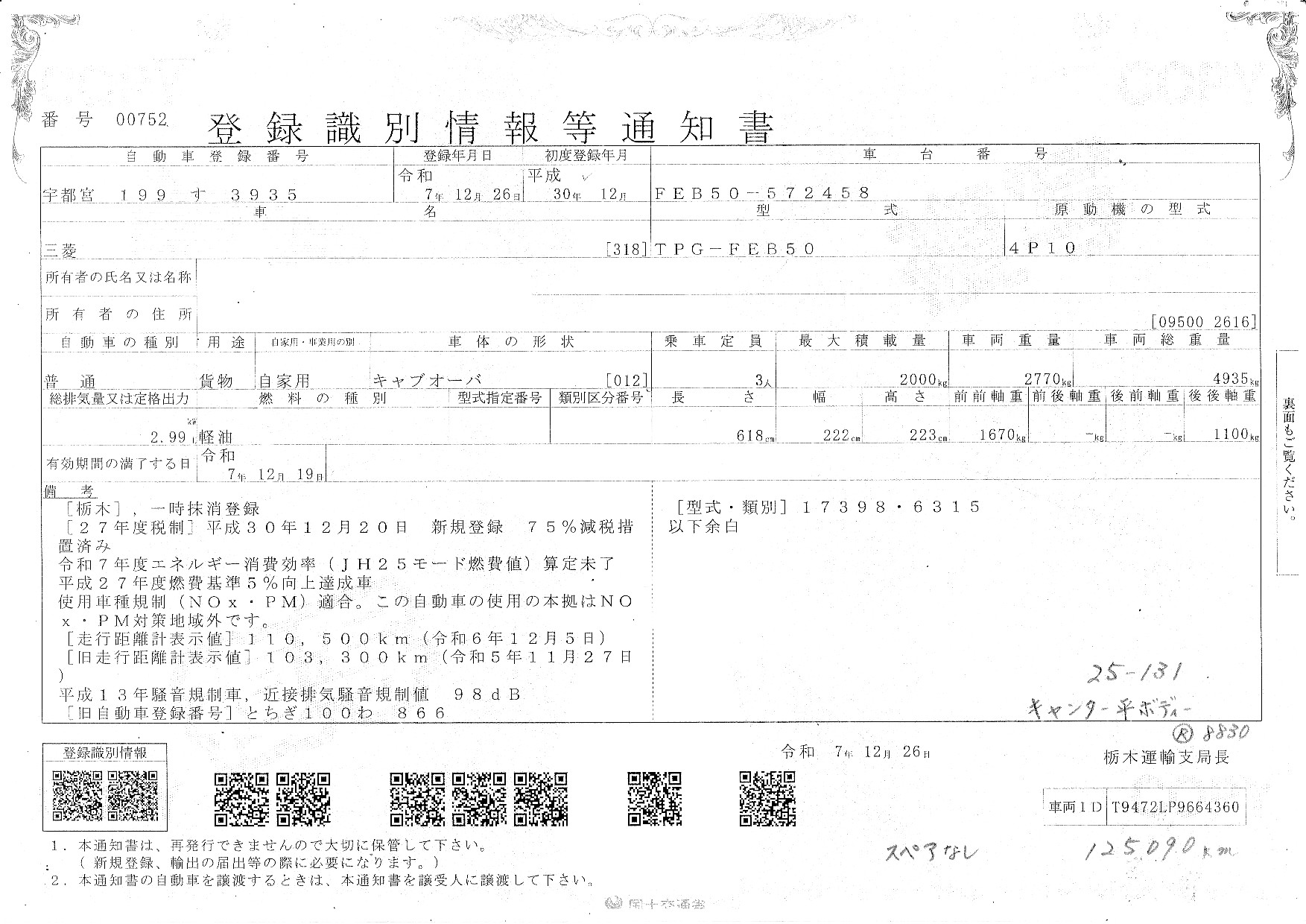 | 初年度登録 | 平成30年(2018年) 12月 |