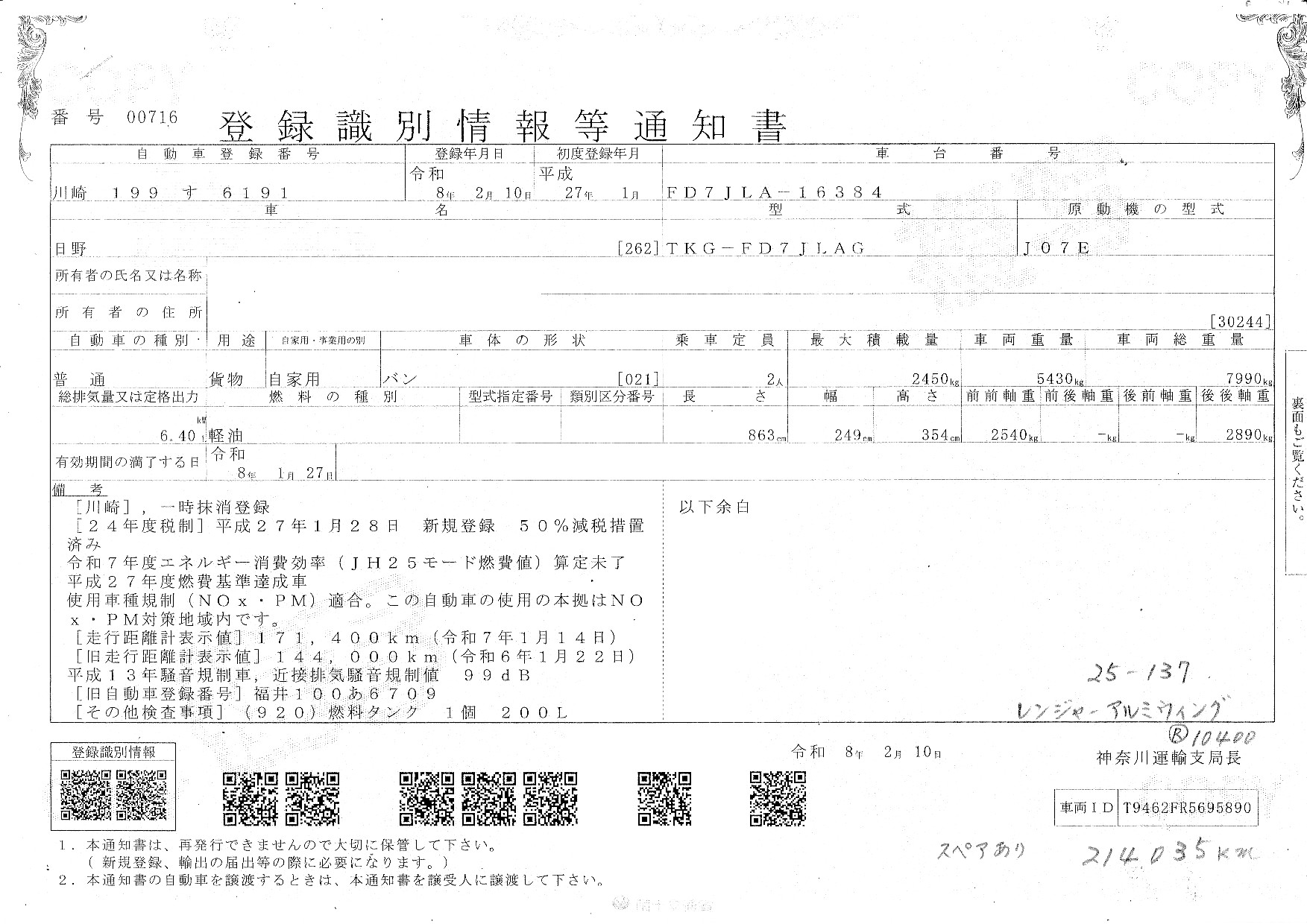 登録型式 TKG-FD7JLAG