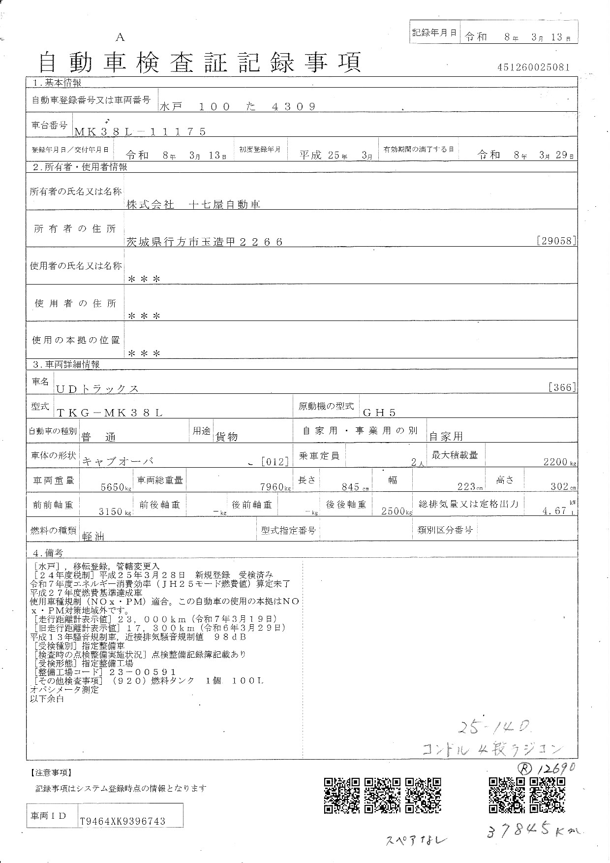 車台番号 MK38L-11175