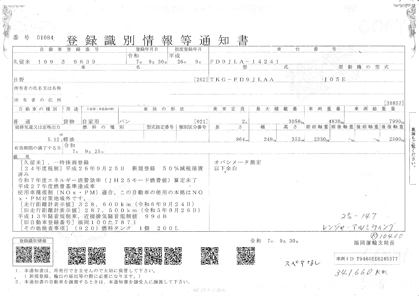 [25-147]H26年レンジャーアルミウィング 3,05t 35万㎞ TKG-FD9JLAA
