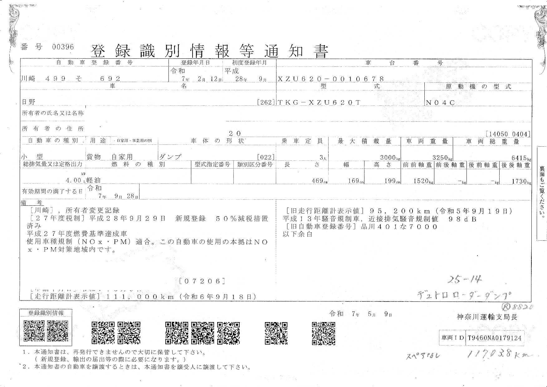 | 架装特記事項 | 新明和工業製ローダーダンプ あおり3方開 |