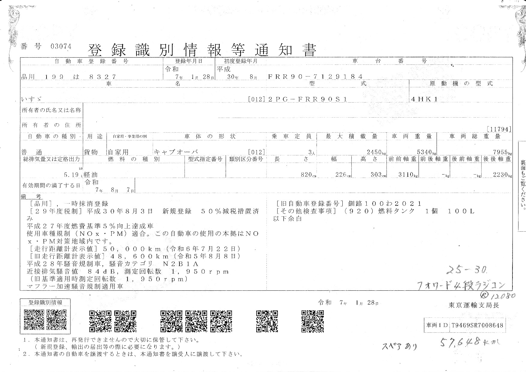 特記事項 ベッドなし ETC フロア6MT 修復歴無