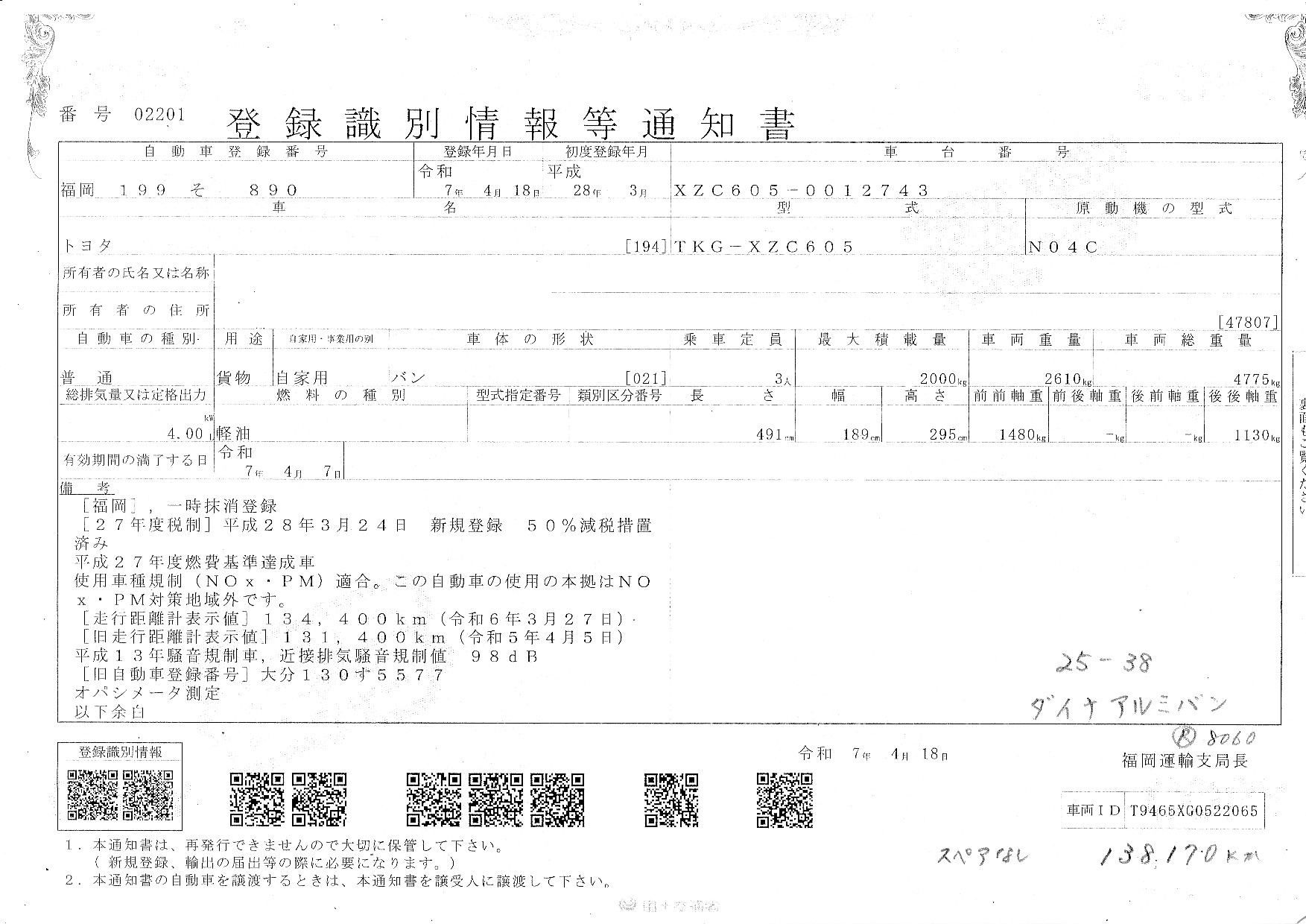 | 初年度登録 | 平成28年(2016年) 3月 |