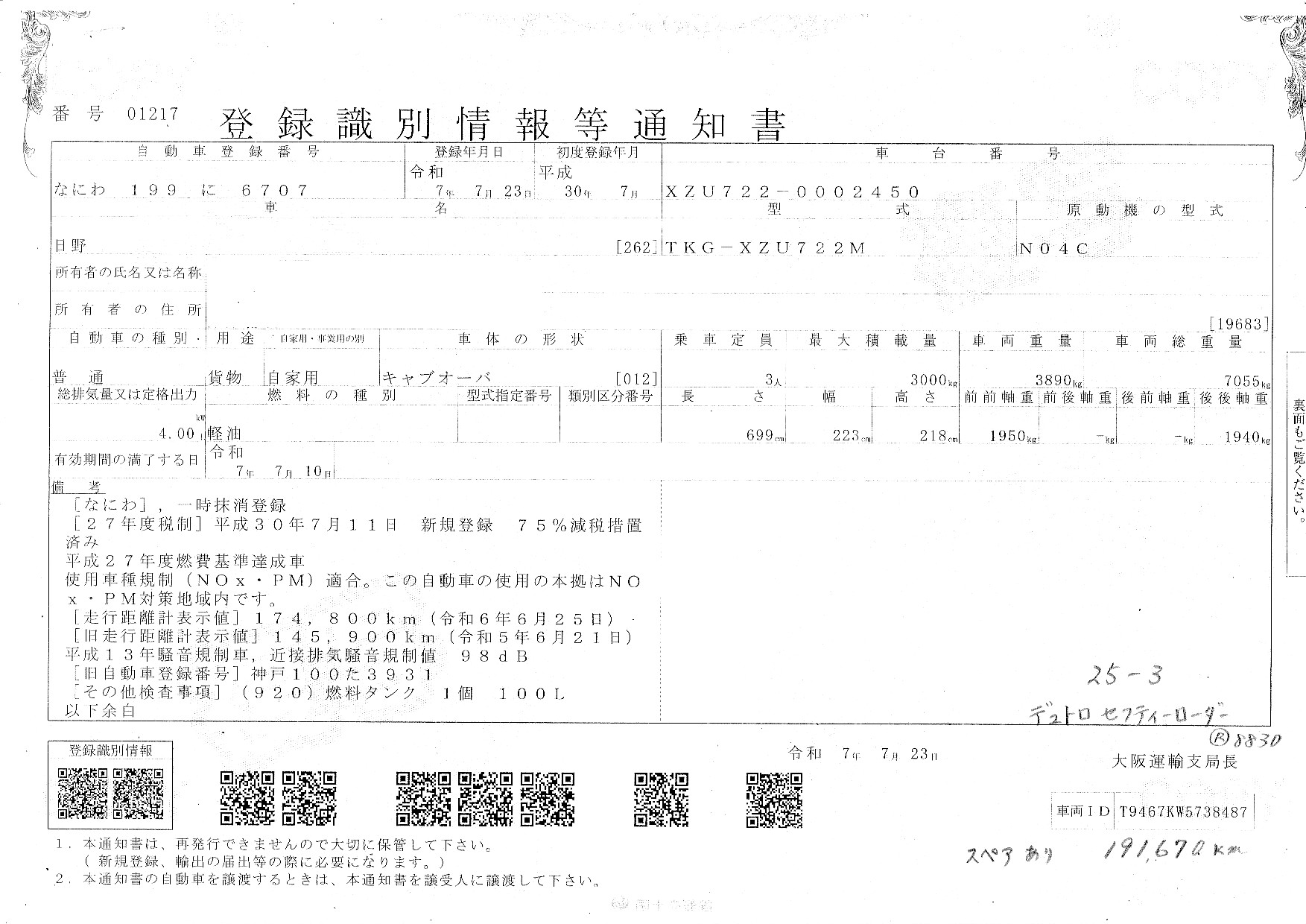 [25-3]H30年デュトロセーフティーローダー 3t 19万㎞ TKG-XZU722M