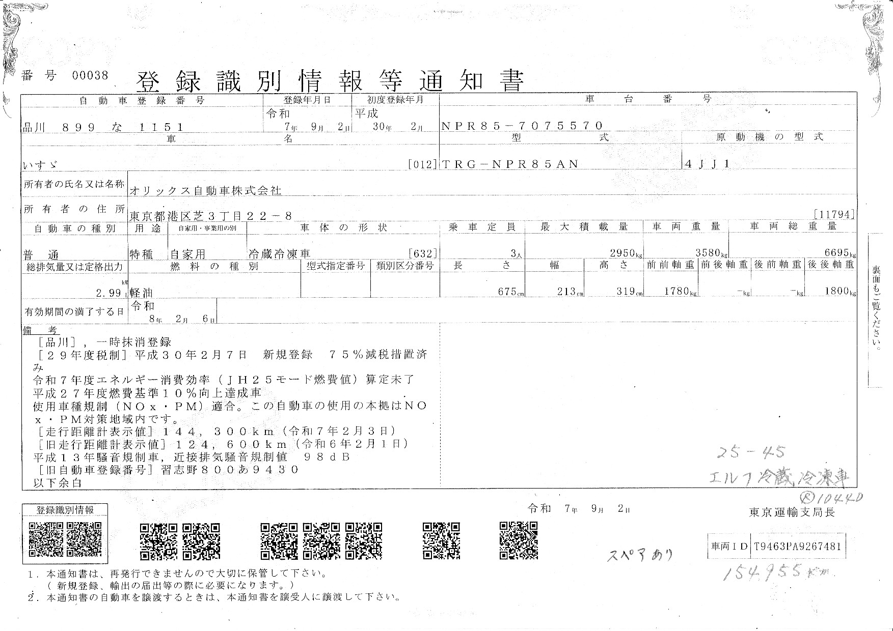 | 架装特記事項 | 菱重製低温冷凍車TDJW50D リア扉厚さ約10cm -30℃設定外気温20℃2時間⁻19℃確認 リア3枚扉 |