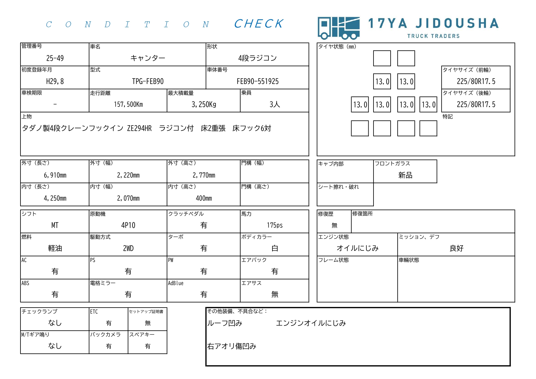 [25-49]H29年キャンター4段ラジコン 3,25t 16万㎞ TPG-FEB90