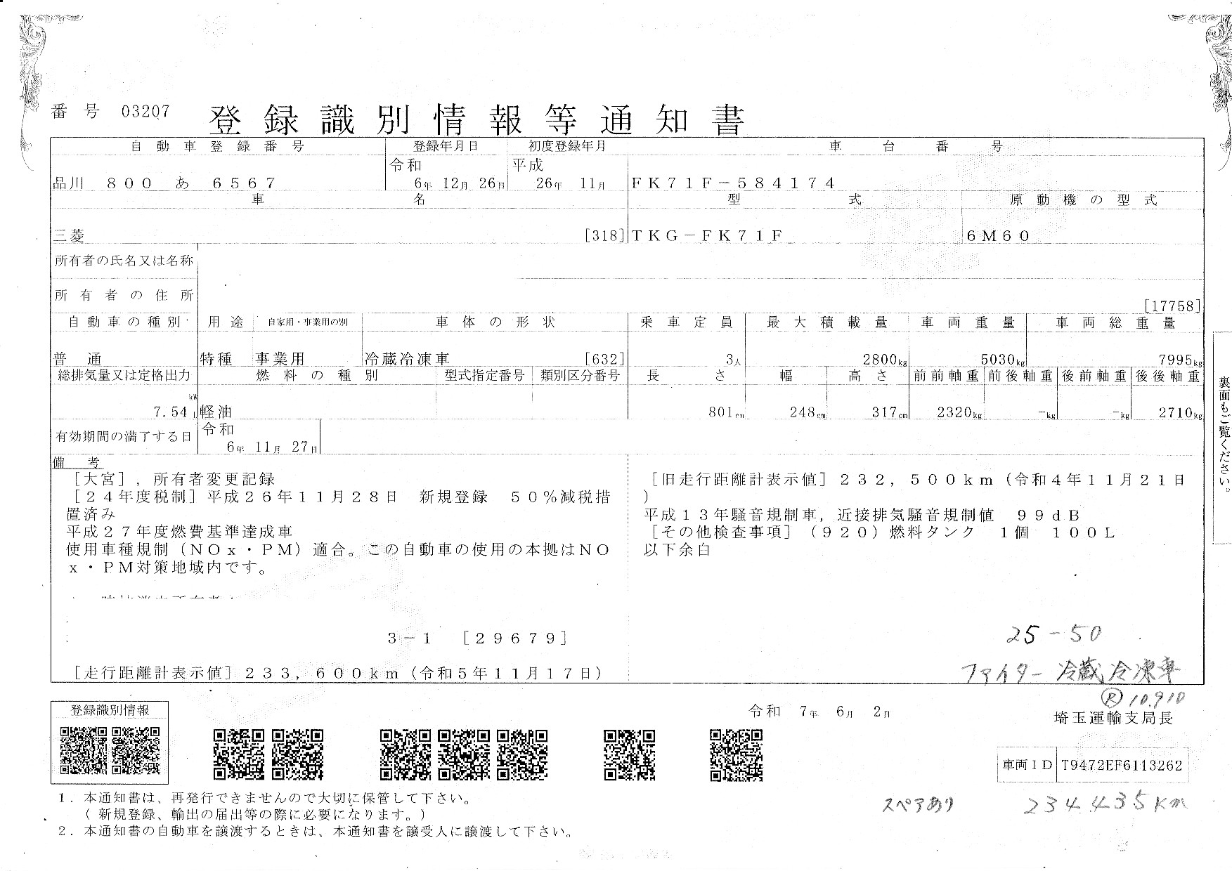 | 通称名 | ファイター冷蔵冷凍車 格納式パワーゲート |