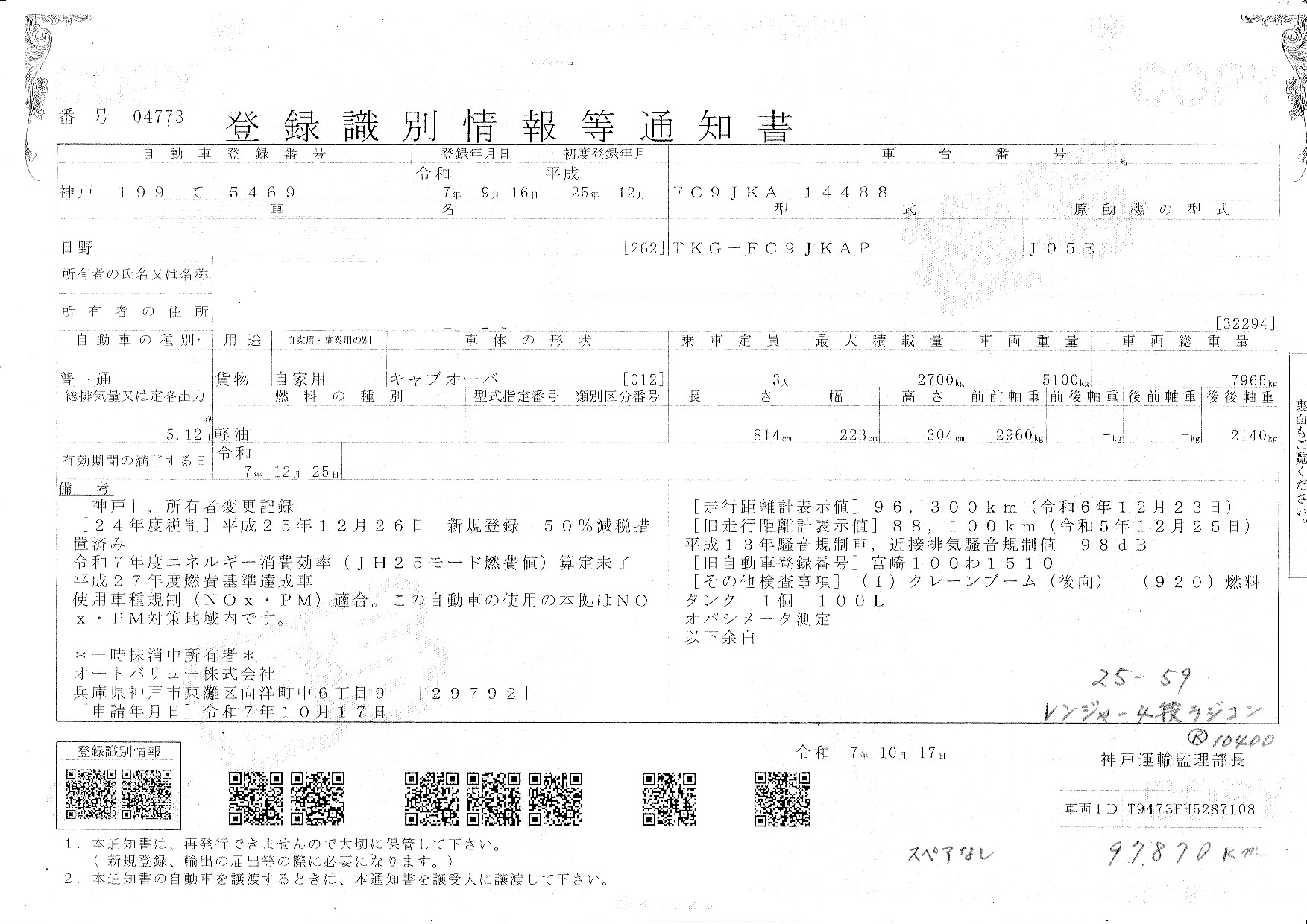 車台番号 FC9JKA-14488